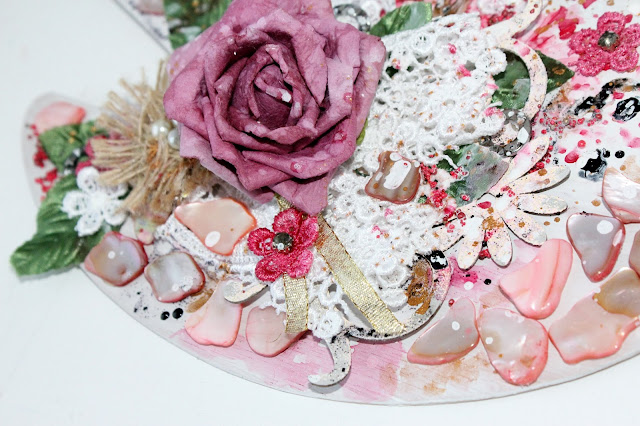 Hi - Kathy Bradley here today. The beautiful Ces't Magnifique March 2016 kit Butterfly Garden has beautiful Blue Fern Studio Timeless collection, as well as flowers, embellishments, chippies, mixed media paints and sprays - so much!