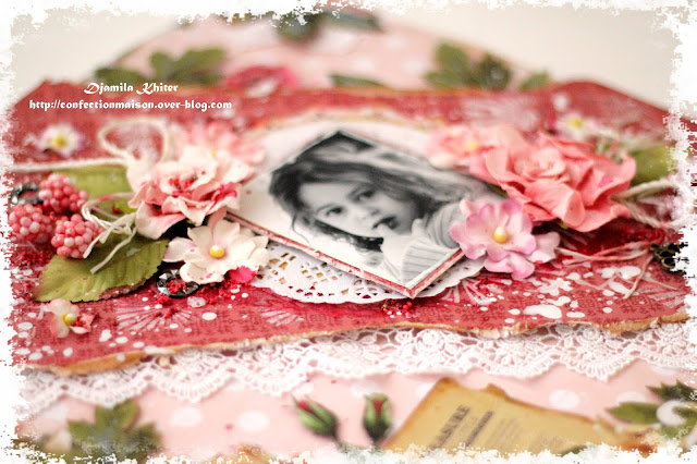 From my personal stash, I used Beacon's 3 in 1 adhesive, a punch and a few small flowers. I also used a few ephemera photos from Finnabair.