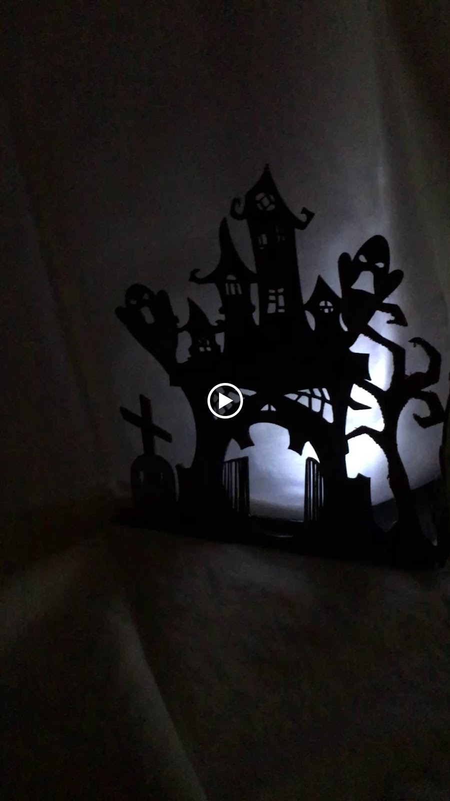 The short video is the piece lit up with a tea light in the spooky darkness!